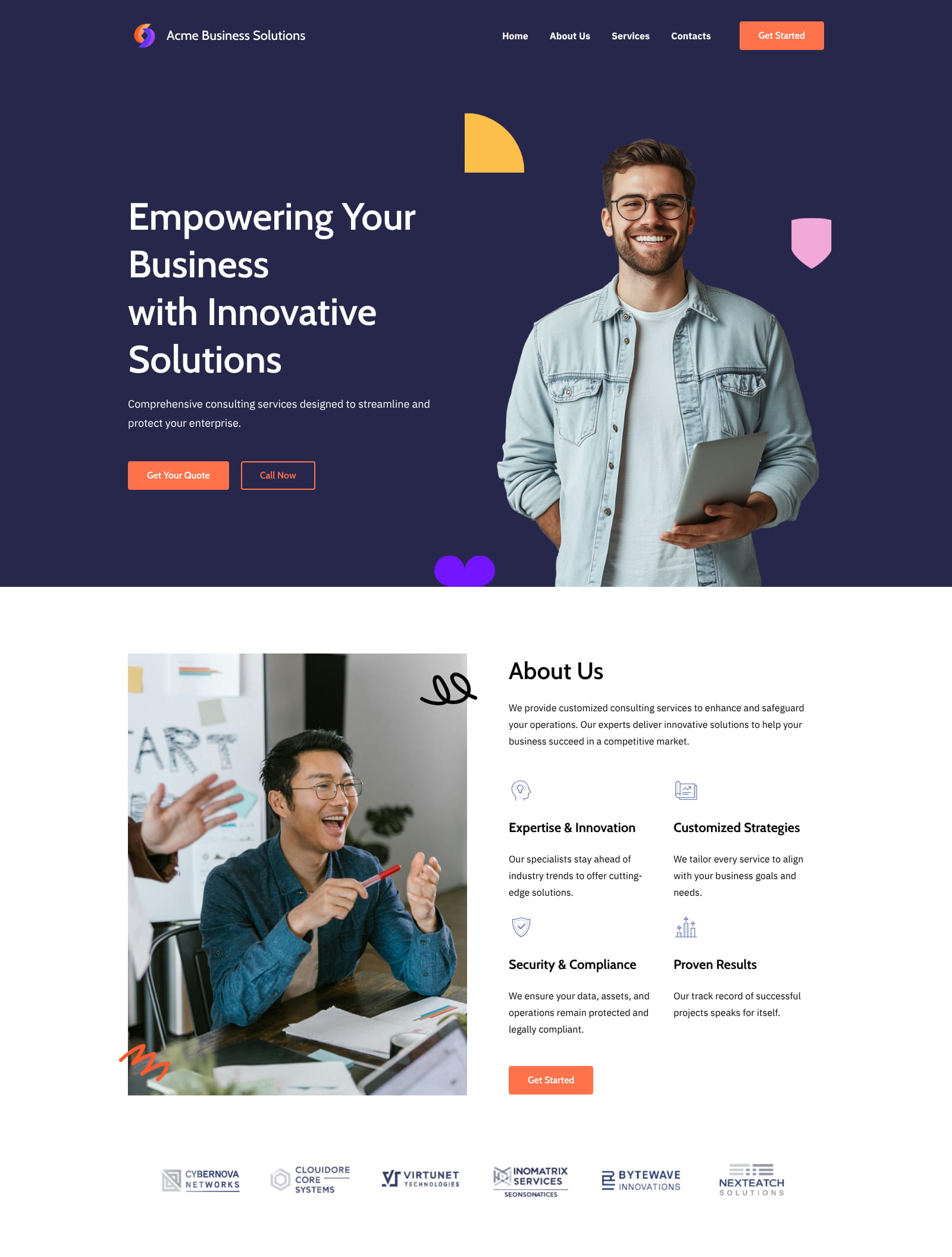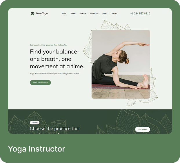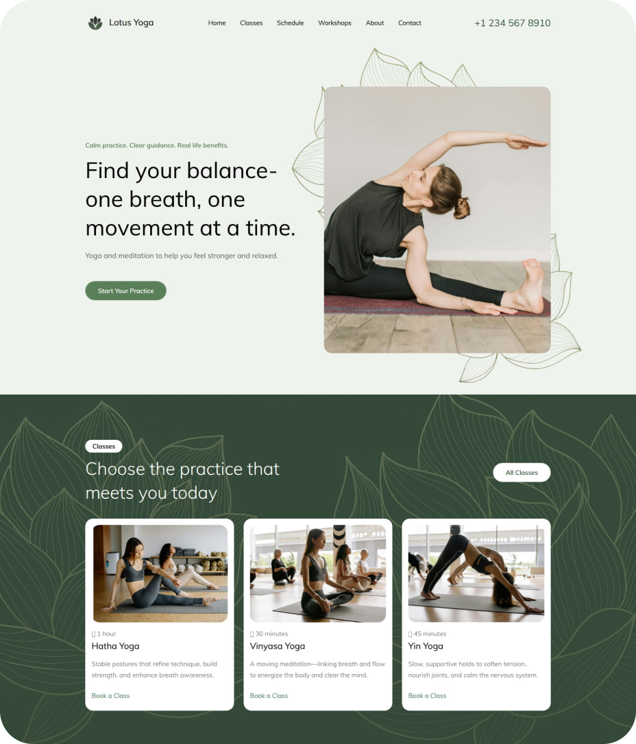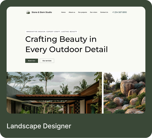 Start by describing your business or selecting a template. Add your content, adjust the design to match your brand, connect a domain, and publish — all inside the Yola website builder.