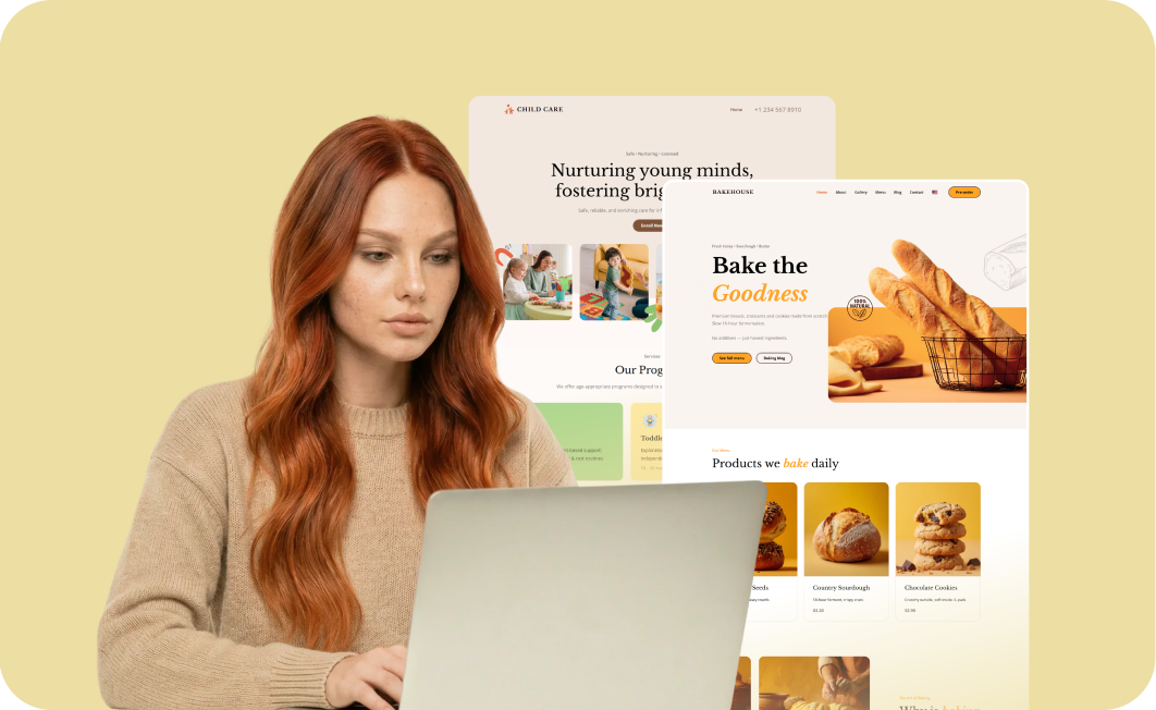 A website builder is an online tool that lets you create, design, and publish a website without coding. With Yola, you can choose a template or use AI, customize your pages with drag-and-drop tools, and launch your site in minutes.