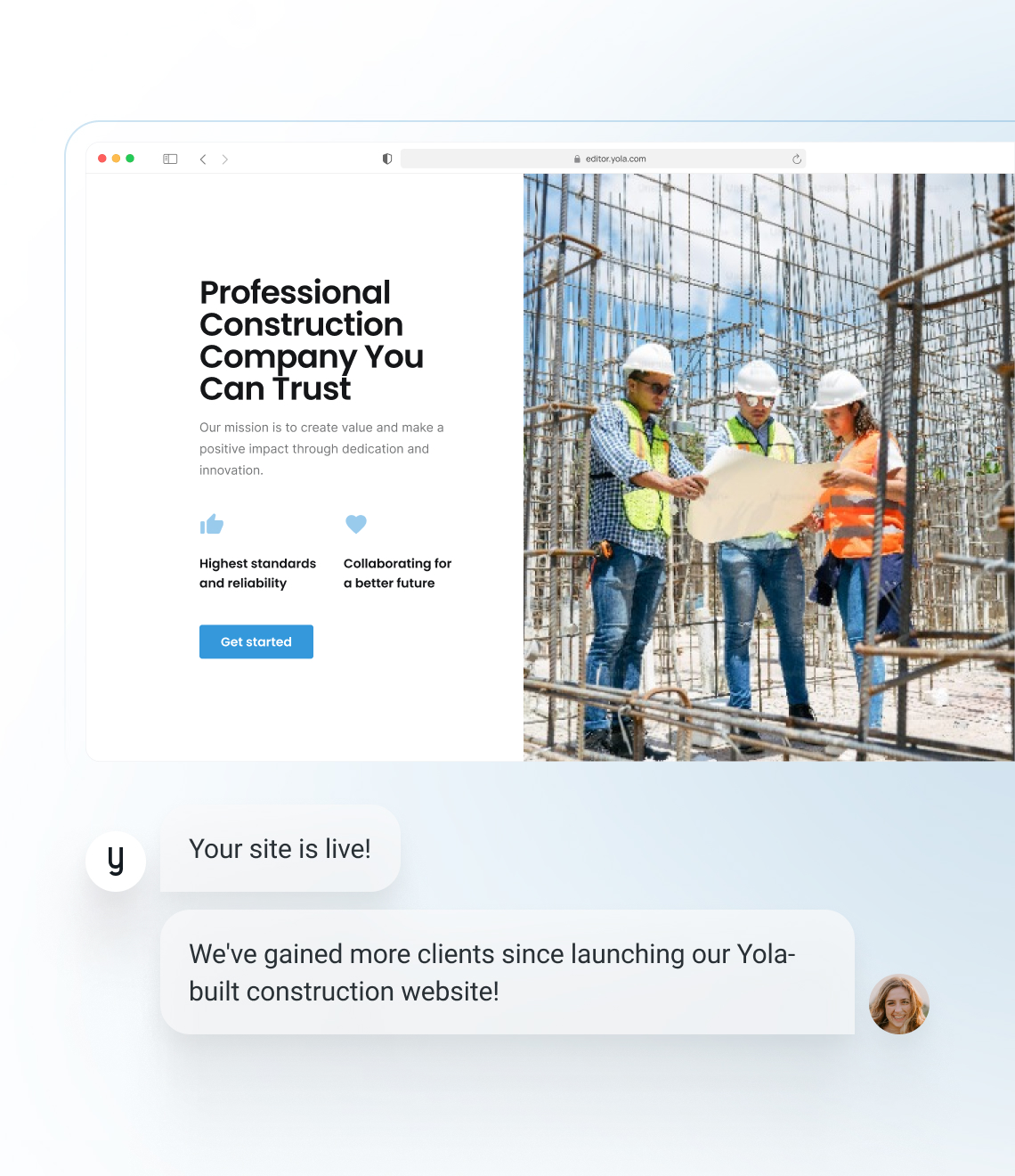 Durch die Nutzung von Yola Sitebuilder ermöglichst du dir selbst, eine starke Online-Präsenz mit minimalem Aufwand zu etablieren, sodass du dich auf das konzentrieren kannst, was du am besten kannst – deine Kunden in der Bauindustrie zu bedienen.