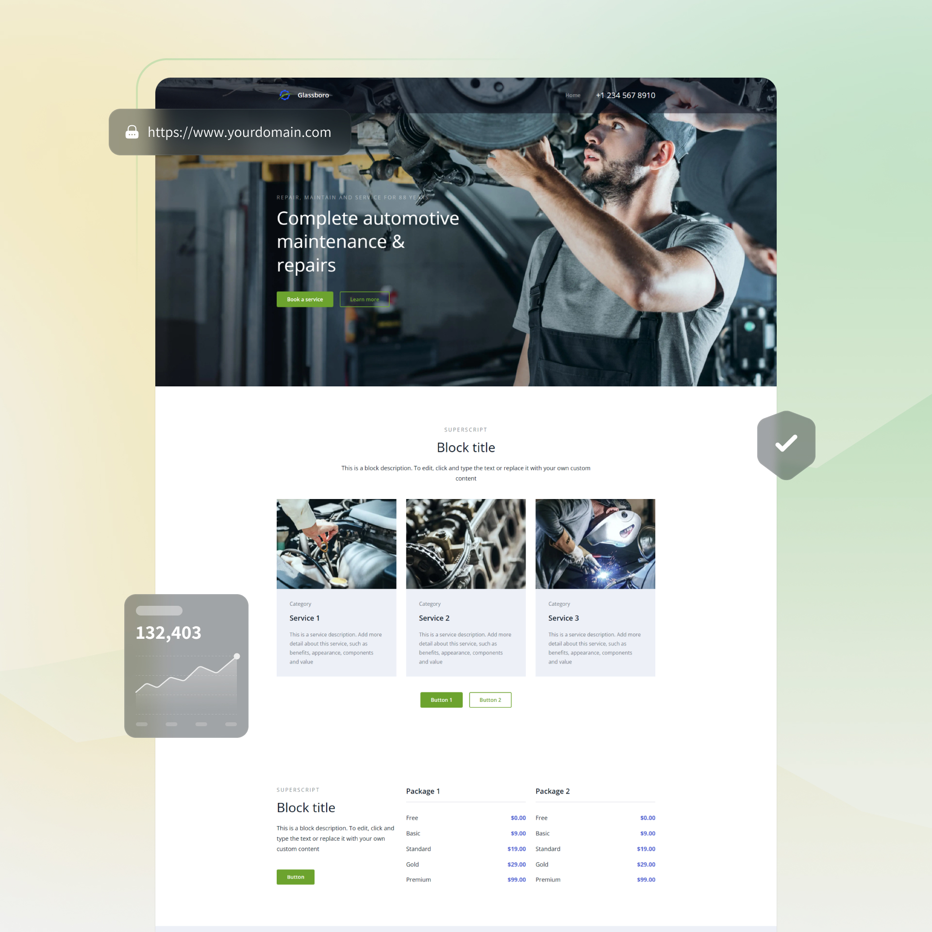 Etabliere eine starke Online-Präsenz für dein Automobilgeschäft, ganz ohne Programmierkenntnisse. Beginne damit, Automobildienstleistungen anzubieten und Kunden mit unserem Website-Builder anzuziehen.