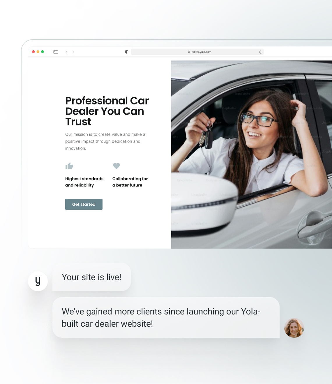 Yola ist einer der besten Website-Baukästen für Autohändler-Dienstleistungen aufgrund seiner Benutzerfreundlichkeit, Flexibilität und robusten Funktionen wie vorgefertigte Vorlagen, responsiver Sitebuilder, Domainverwaltung, Online-Shop und vieles mehr.