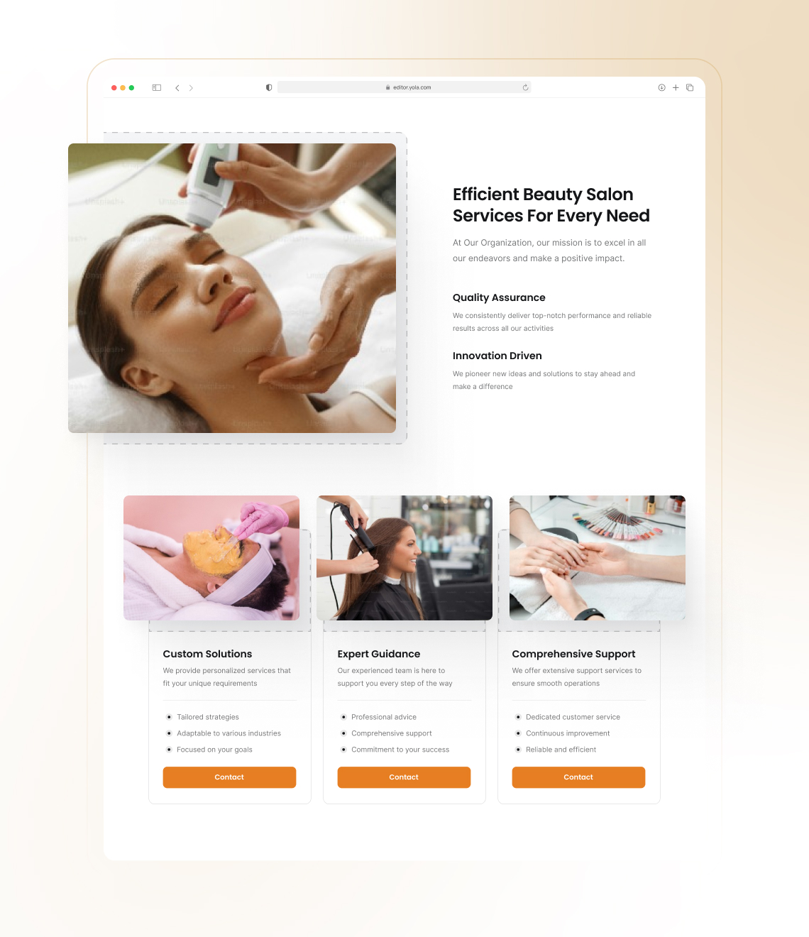 Mit Yolas Benutzeroberfläche und Vorlagen kannst du in nur wenigen Stunden eine Website für einen Schönheitssalon und andere Unternehmenswebsites gestalten.