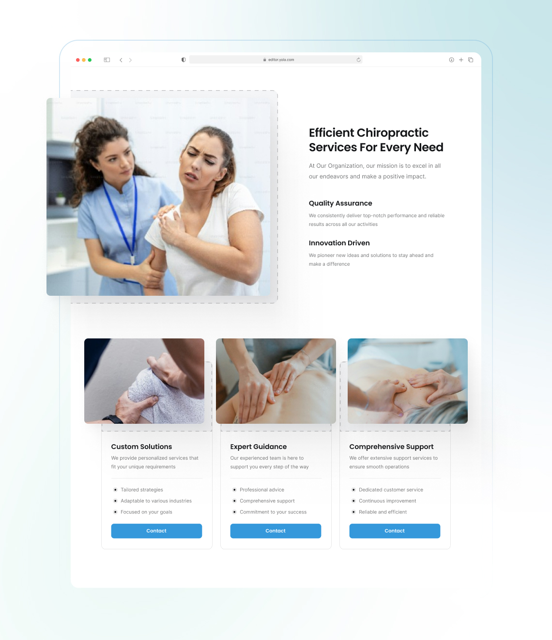 Get new patients, appointment bookings, and health inquiries from your website built with Yola chiropractic website builder.