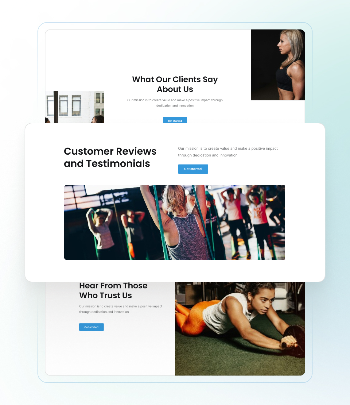 Our gym website templates are customized for specific niches, such as fitness center, health club, workout studio, boxing gym, climbing gym, and more.