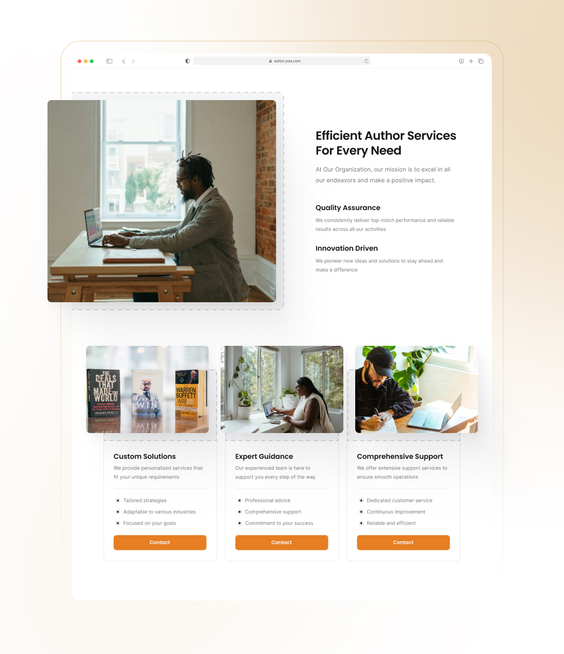 With Yola’s user-friendly tools, you can have a fully designed business website or an author website within a few hours.