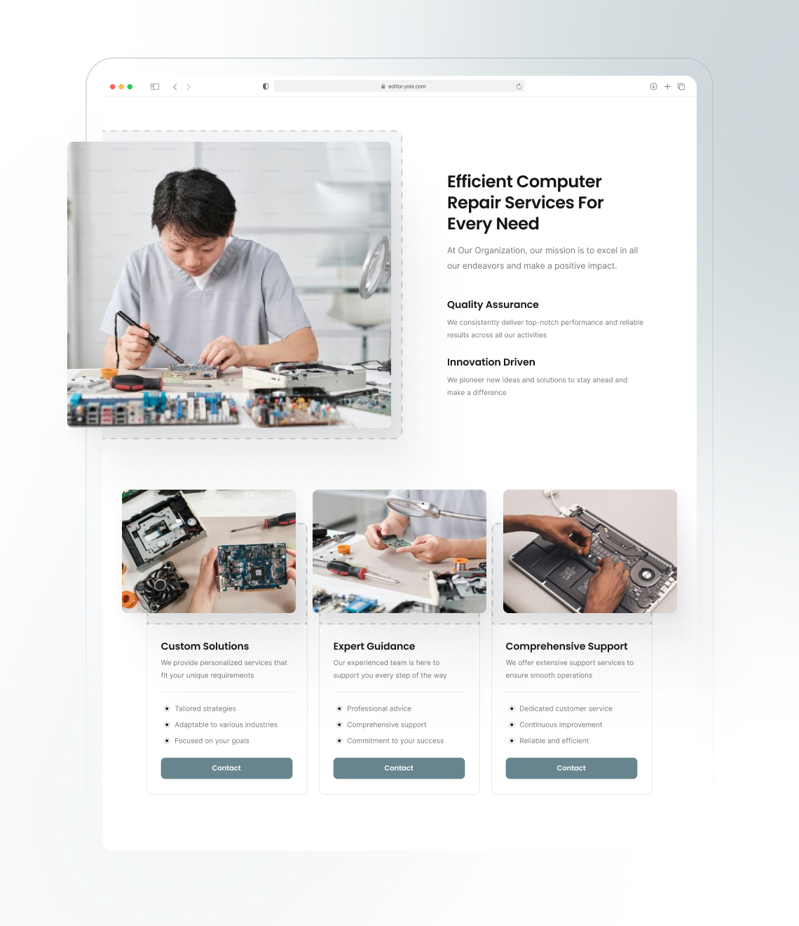 With Yola’s user-friendly tools, you can have a fully designed business website, including a computer repair website, within a few hours.