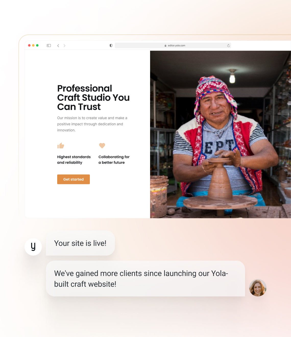Diseñar una página web para vender artesanías con Yola suele llevar solo unas pocas horas, gracias a nuestra interfaz fácil de usar y a las plantillas personalizables para sitios web de artesanías.