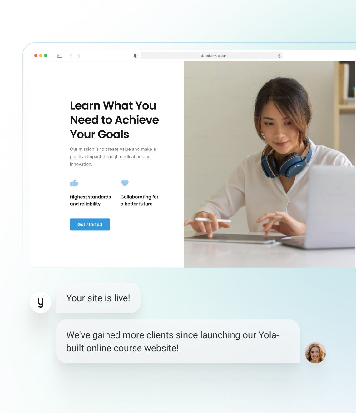 Yola es uno de los mejores creadores de páginas web para servicios de educación en línea gracias a su facilidad de uso, flexibilidad y robustas características, como plantillas prediseñadas, constructor de sitios web responsivo, gestión de dominios, tienda en línea y mucho más.