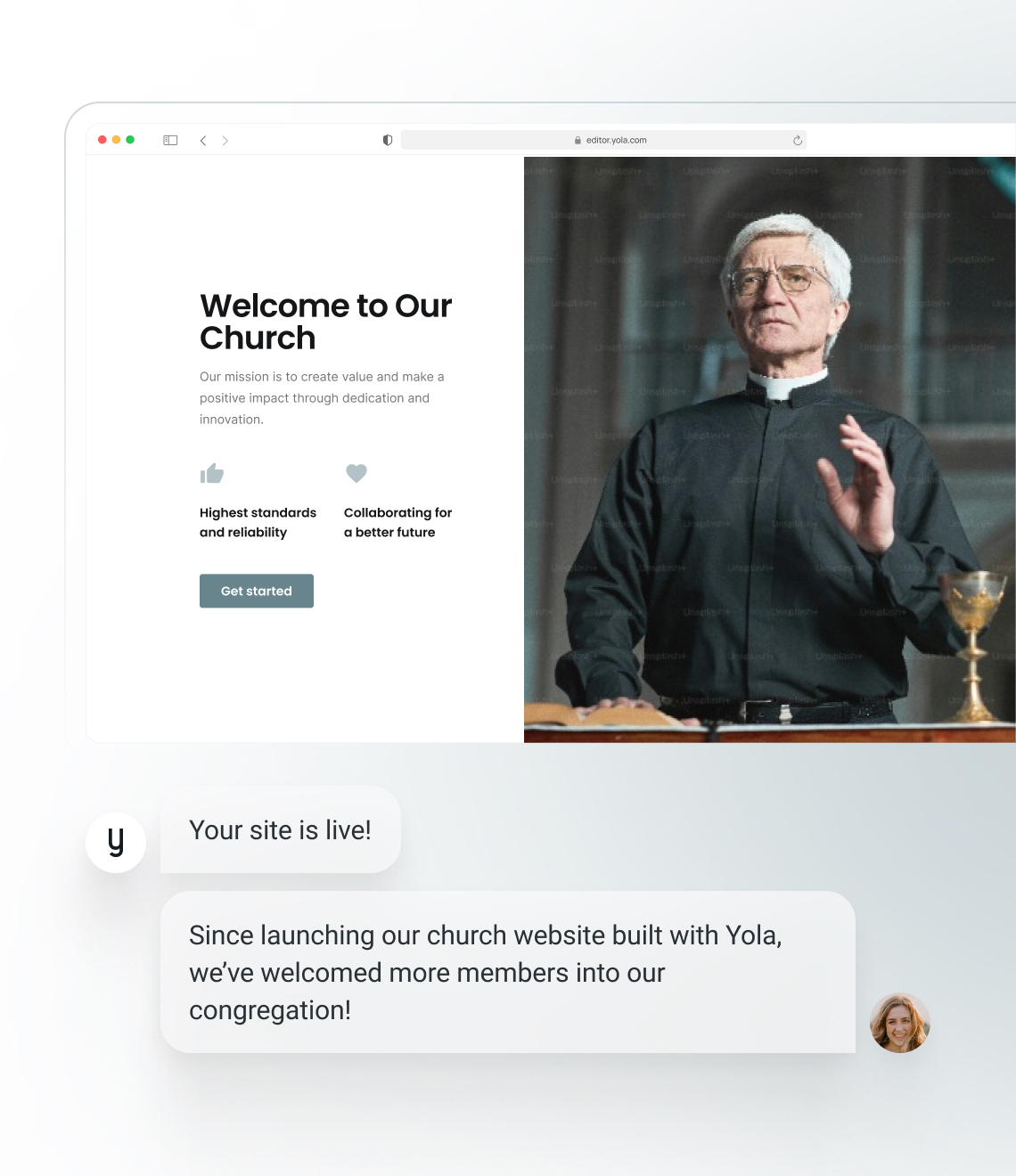 En utilisant Yola Sitebuilder, vous donnez à votre église le pouvoir d'établir une forte présence en ligne avec un minimum de tracas, vous permettant de vous concentrer sur ce qui compte vraiment – servir votre communauté.