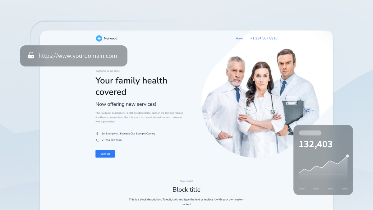 Votre nom de domaine sert d'adresse à votre site web, il doit donc être facile à retenir et représenter votre cabinet médical. Optez pour quelque chose de simple, comme "CabinetMedicalDrJohn.com", qui transmet clairement vos services et est facile à mémoriser pour les patients. Évitez les noms complexes ou les chiffres qui pourraient dérouter les clients potentiels.