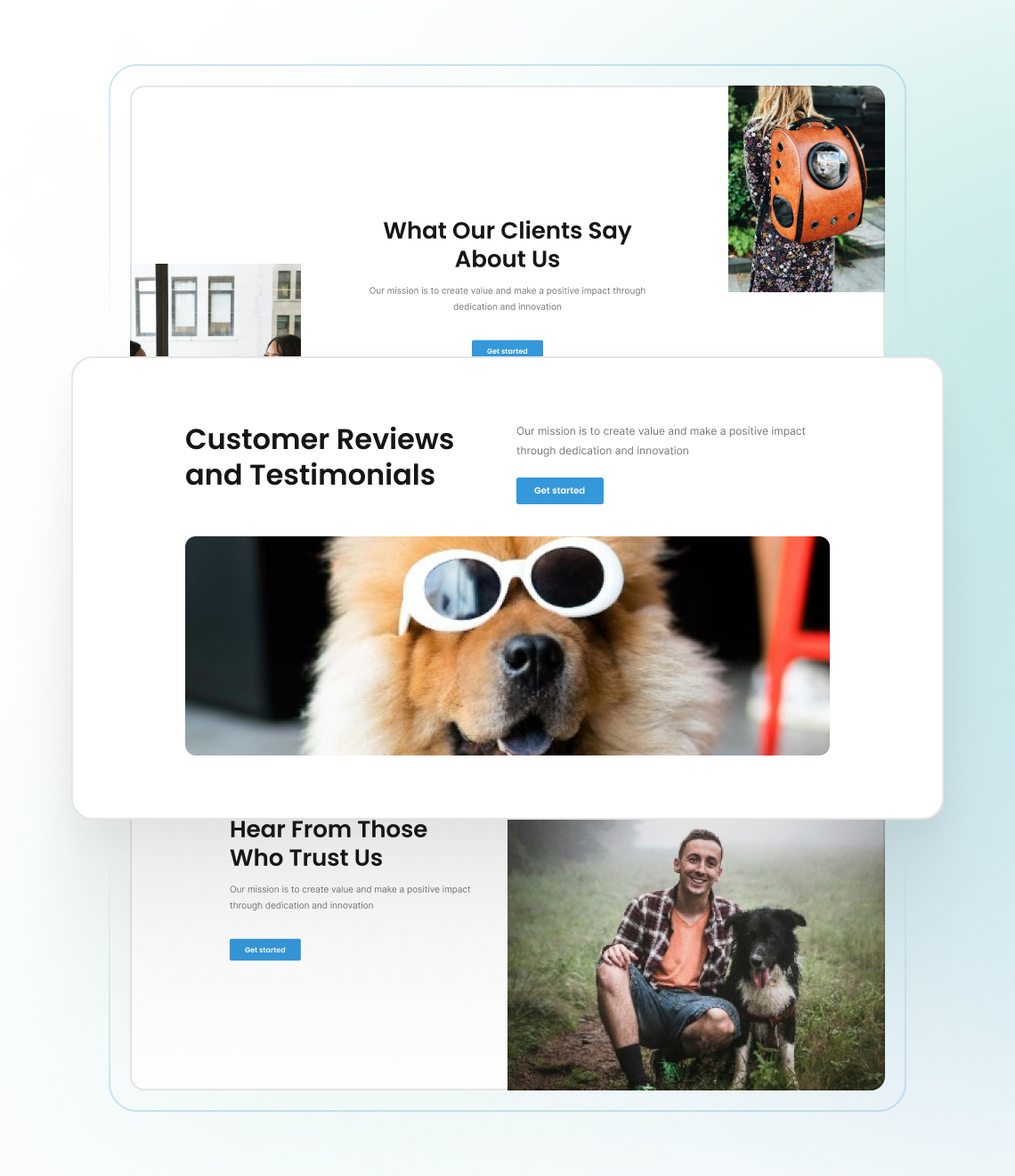 Nos modèles de sites web pour le toilettage d'animaux sont personnalisés pour des niches spécifiques, telles que le toilettage, la promenade de chiens, la garde d'animaux, le dressage, les soins aux animaux et bien plus encore.