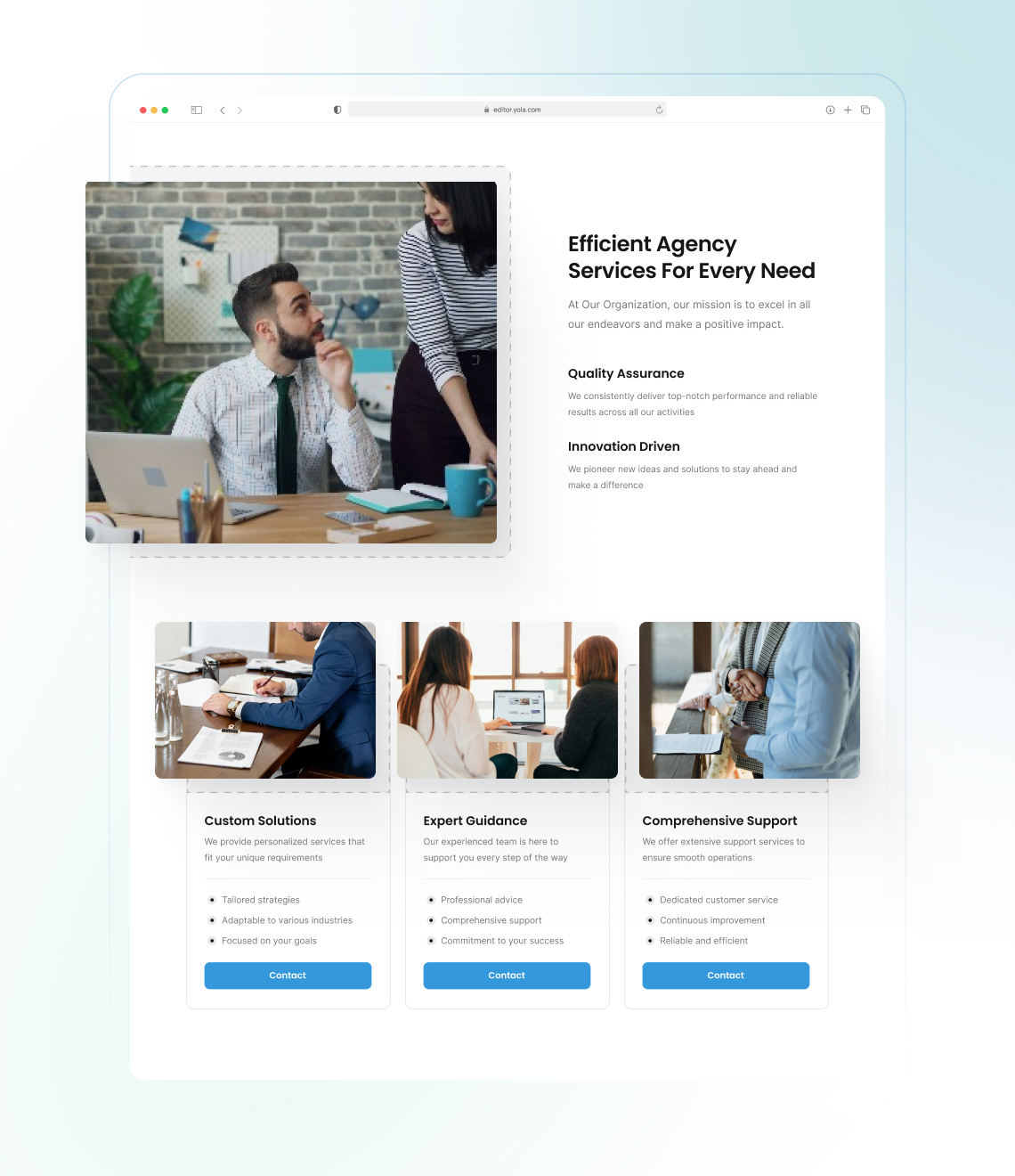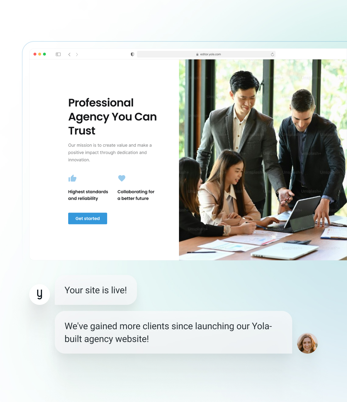 L'interface et les modèles de Yola vous permettent de concevoir un site web d'agence et un site web professionnel en seulement quelques heures.
