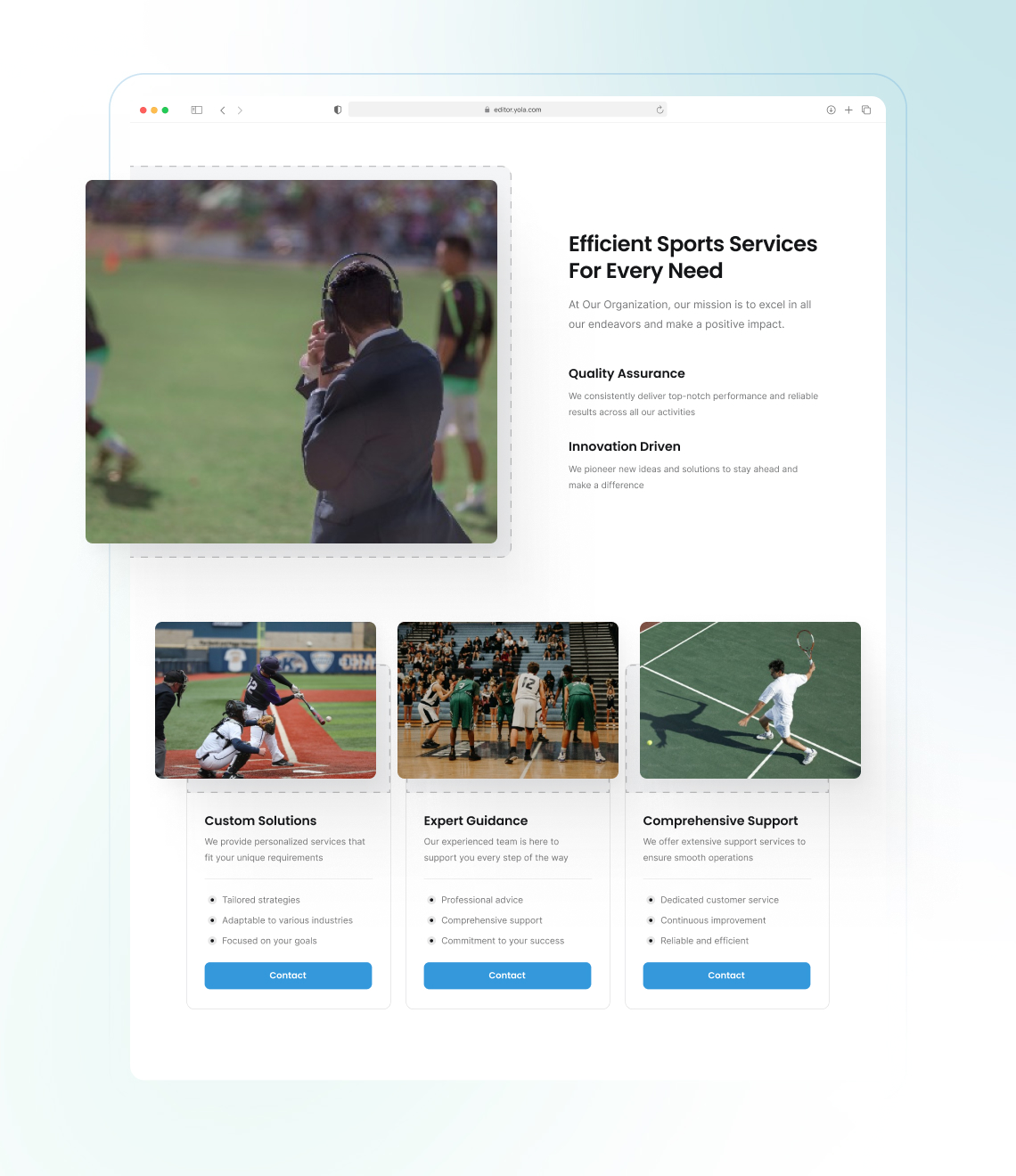 Grâce aux outils de conception conviviaux de Yola, créer un site web pour votre entreprise ou un site web sportif ne prend que quelques heures.
