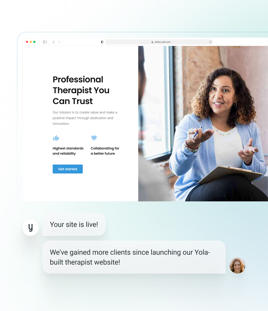 La plateforme de Yola est si simple qu'il ne vous faudra généralement que quelques heures pour créer un site web de thérapeute.