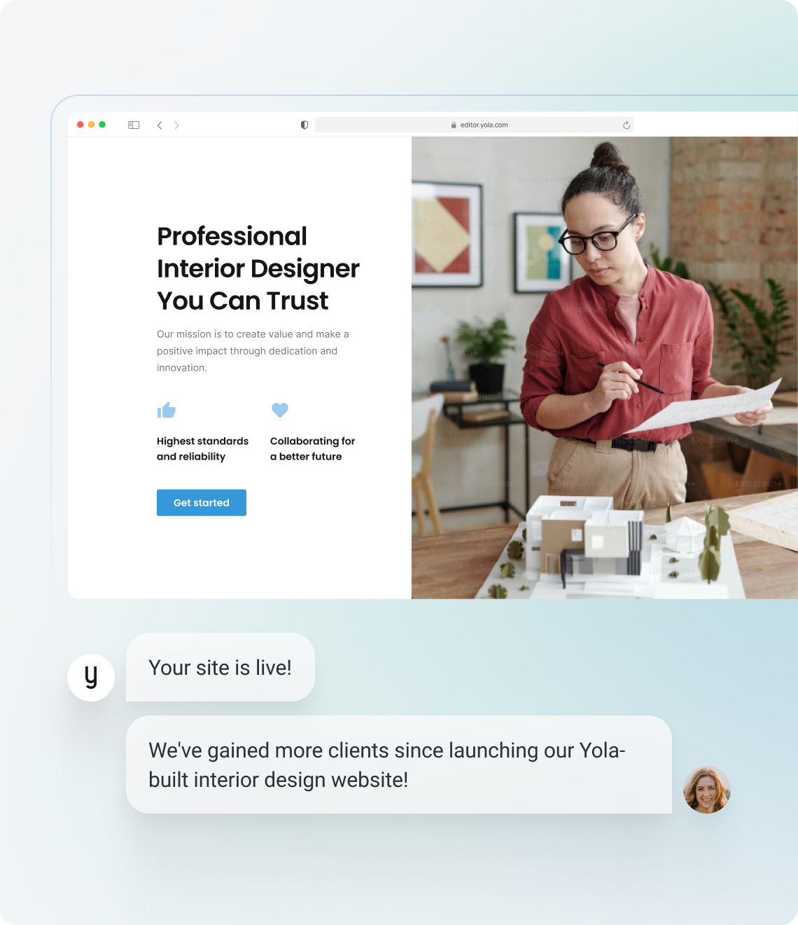 Crea una presenza online professionale in pochi minuti utilizzando il costruttore di siti web Yola AI.