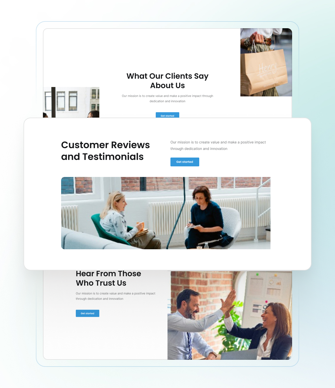 O bloco de Depoimentos na ferramenta Sitebuilder da nossa plataforma é uma excelente ferramenta para essa tarefa.