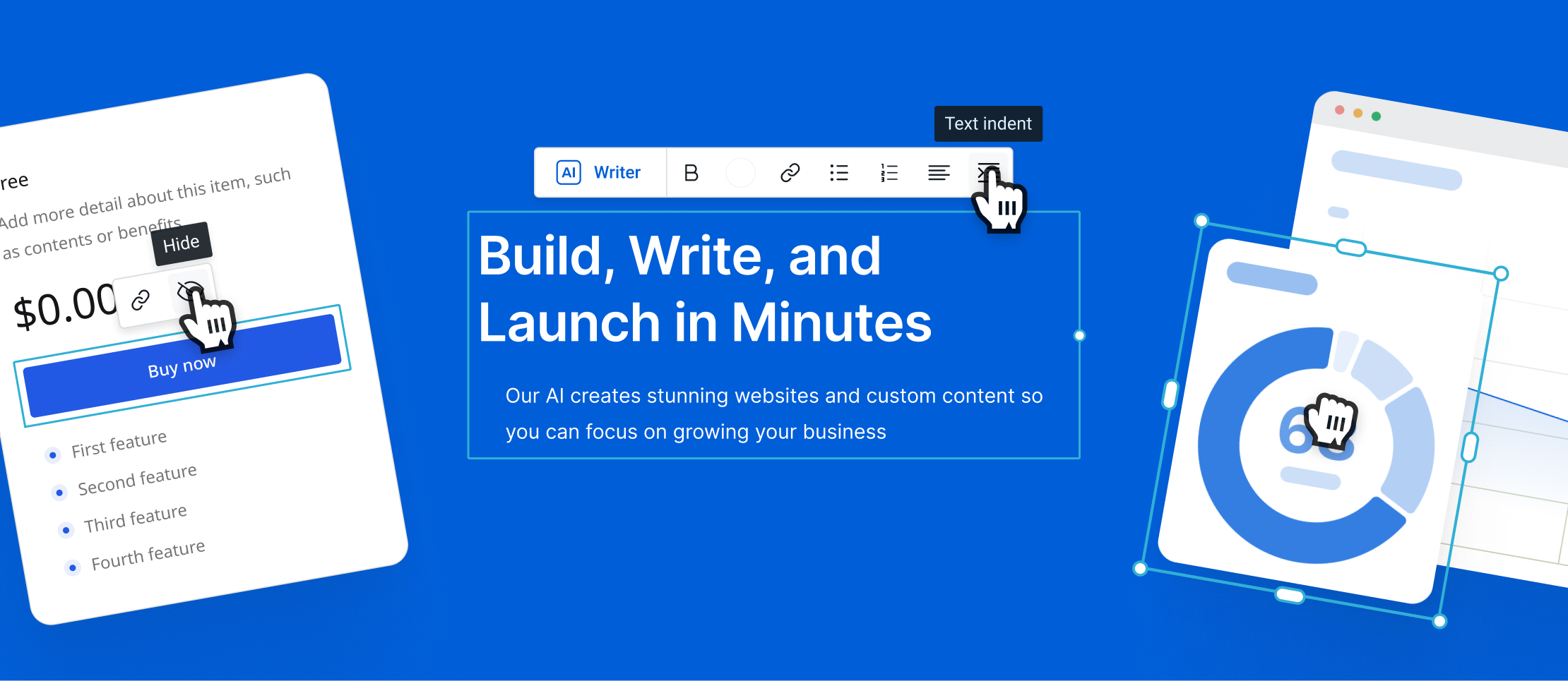 Assistente de Texto com IA: Ajuda a refinar e transformar elementos de texto no seu site, tornando o processo de escrita mais suave e rápido. Com instruções personalizadas, você pode melhorar a qualidade do seu conteúdo sem o incômodo de começar do zero.