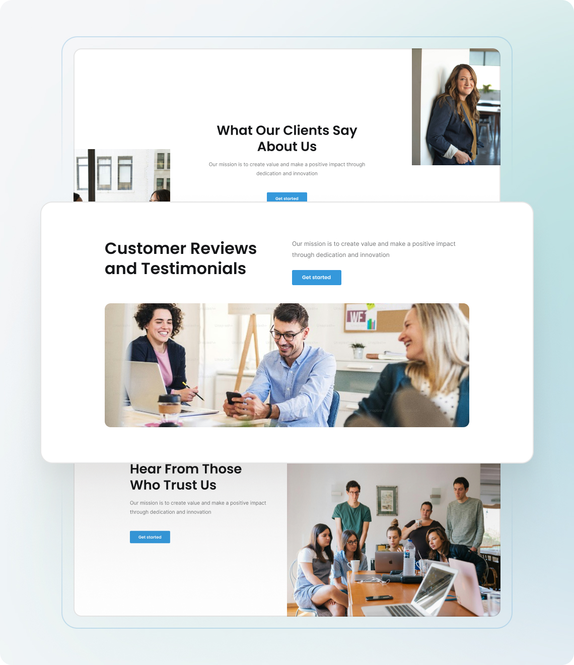 Um site de design de interiores deve ter uma página inicial, sobre nós, serviços, depoimentos e páginas de contato para fornecer informações abrangentes aos visitantes. Você pode adicionar facilmente essas páginas ao seu site baseado no Yola.