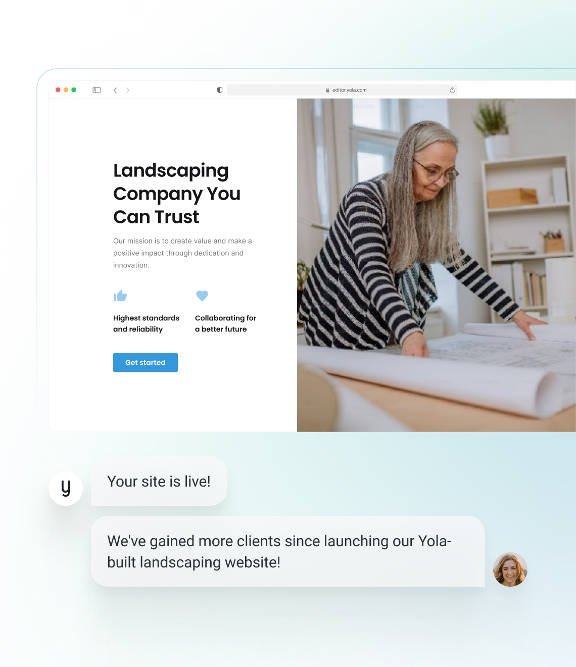 Yola é um dos melhores construtores de sites para serviços de paisagismo devido à sua facilidade de uso, flexibilidade e recursos robustos, como modelos pré-desenhados, construtor de sites responsivo, gerenciamento de domínios, loja online e muito mais.