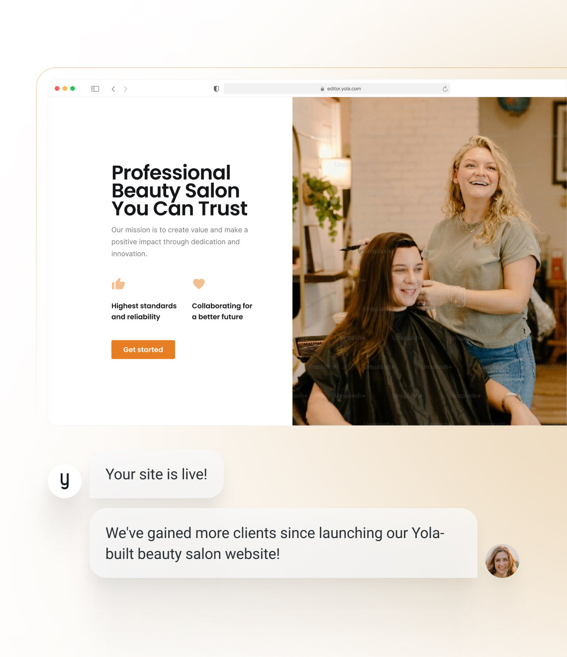 A interface e os modelos da Yola tornam possível projetar um site de salão de beleza e outros sites de negócios em apenas algumas horas.
