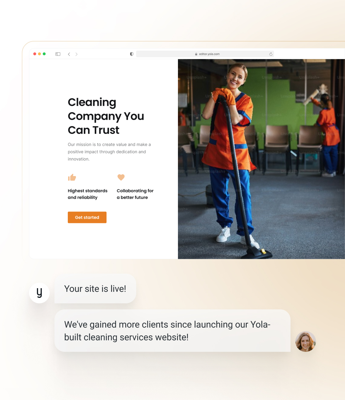 A plataforma intuitiva da Yola permite que você projete o site de uma empresa de limpeza em apenas algumas horas, usando modelos personalizáveis.