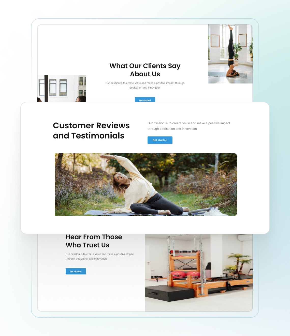Dê uma olhada nesses modelos impressionantes e compatíveis com dispositivos móveis, projetados especificamente para estúdios de pilates. Eles atendem a várias necessidades, incluindo aulas de pilates, sessões de reformer e instrução virtual. Perfeitos para entusiastas do fitness, proprietários de estúdios e profissionais de bem-estar. Crie sua presença online com o construtor de sites Yola.