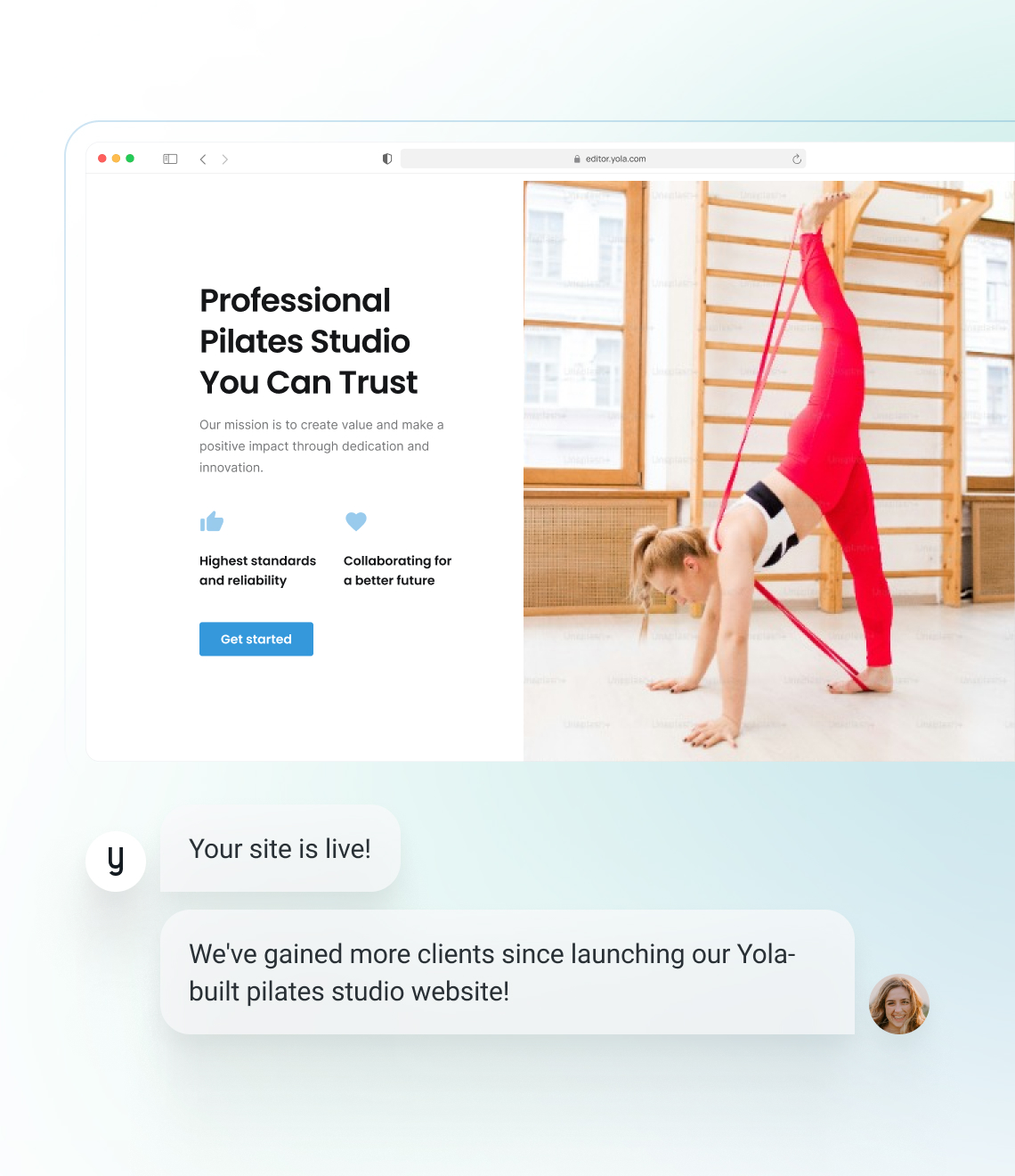O Yola Sitebuilder é fácil de usar e não requer habilidades de programação, tornando simples para um estúdio de Pilates criar seu site comercial.